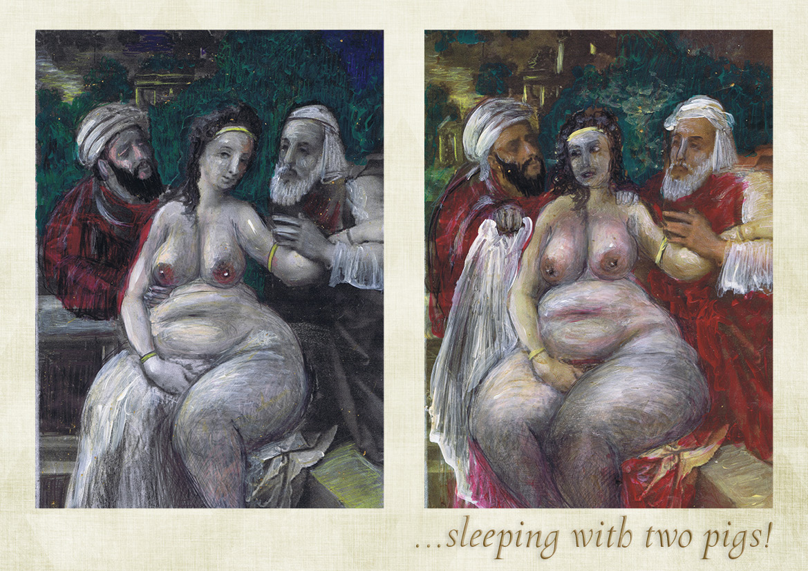 Ein klassisches Thema, frei nach Buch Daniel Kapitel 13 mit Bildern, die nach Werken von Rubens, Jordaens, Barberi, Corinth, Böcklin, Louis Jean François Lagrenée, Reni, Cagnacci oder völlig frei konzipiert wurden.